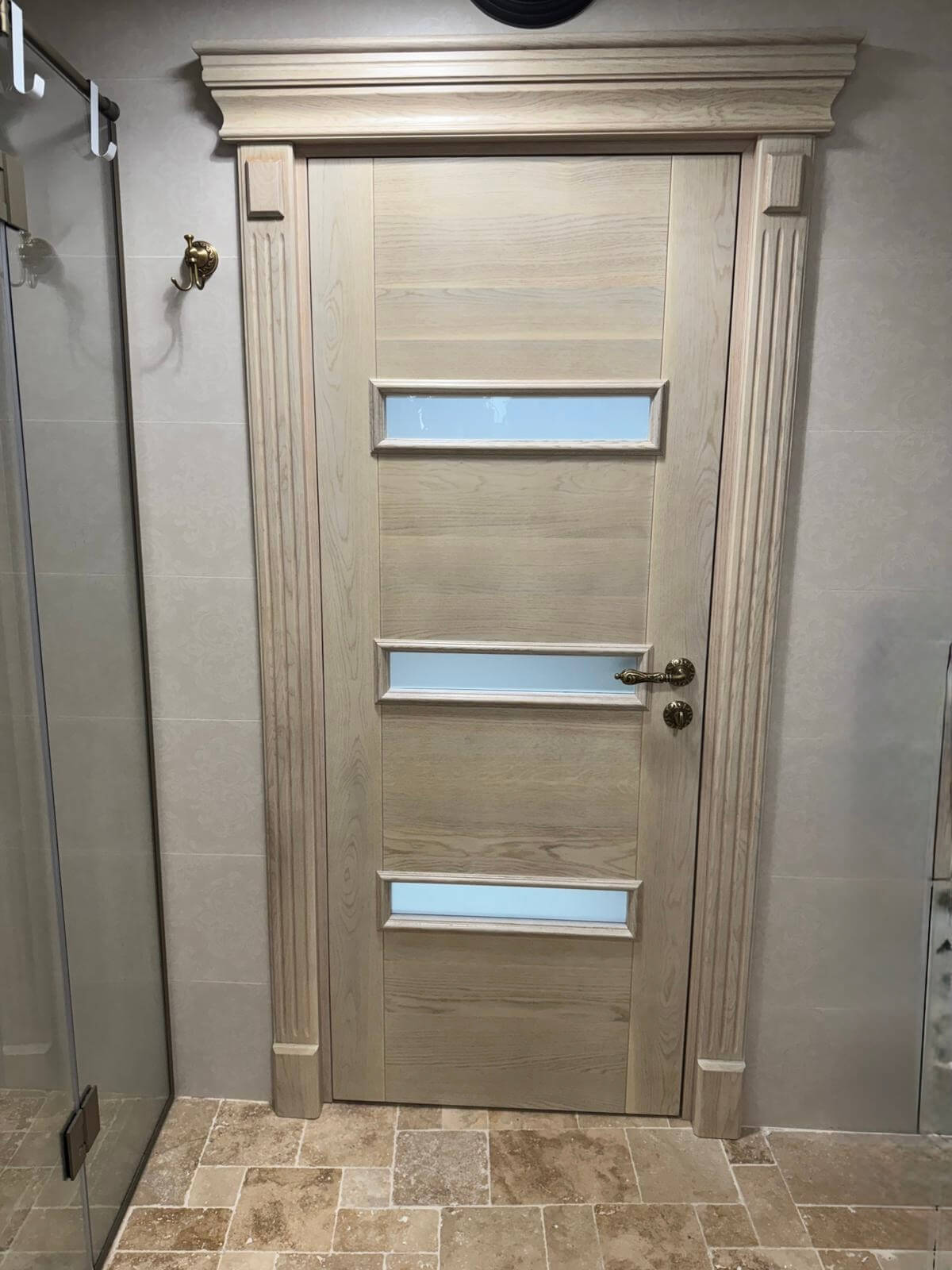 Lemn stejar masiv model 3 goluri, cu capitel, baituit ,,albit bej,, vedere interior