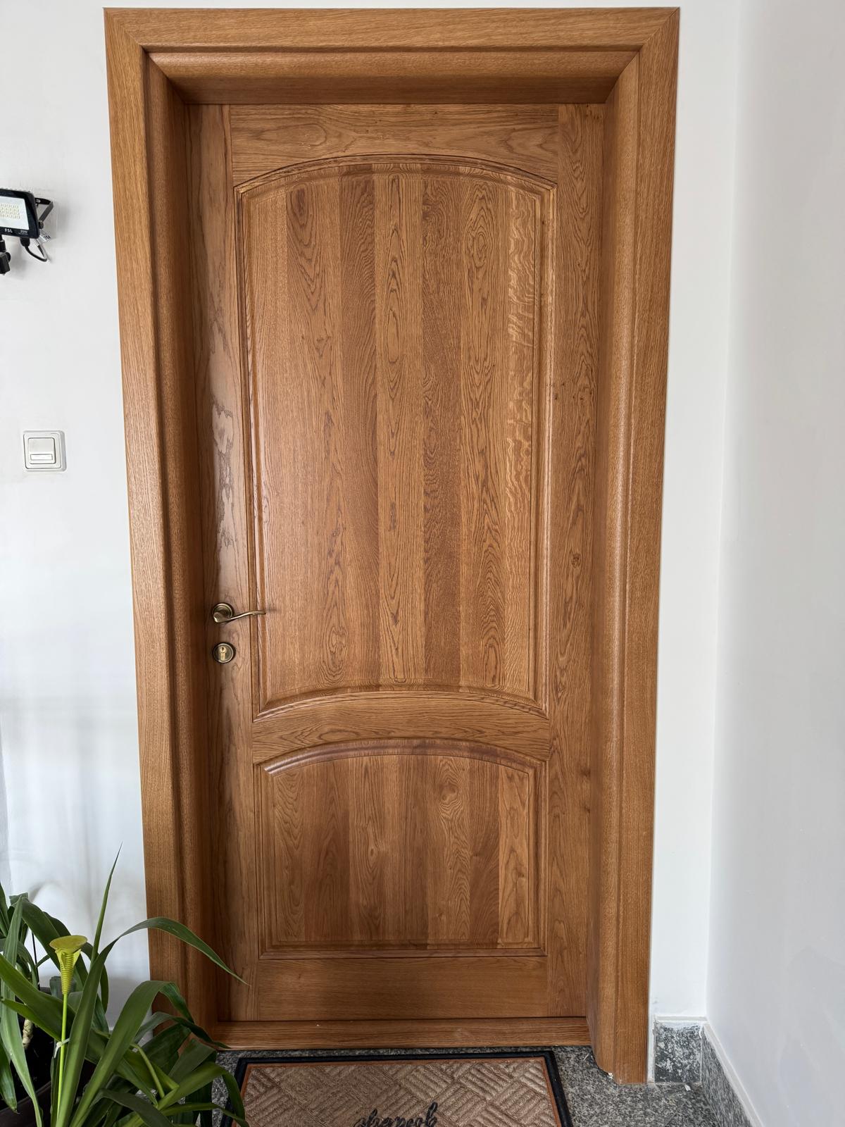 - usi interior din lemn masiv integral stratificat (stratificarea inseamna spargerea elementului de lemn, calibrarea la cote exacte si lipirea in doua sau mai multe straturi pentru o rezistenta marita la factori mecanici, curbare sau fisurare)